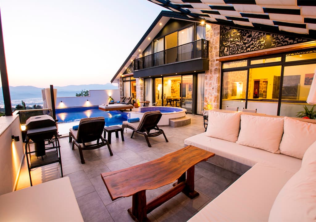 تقع هذه الفيلا في منطقة أوزوملو في كالكان، وتحتوي على غرفتي نوم مع مسابح خارجية وداخلية منعزلة، وتعد خيارًا مناسبًا للعائلات الكبيرة.