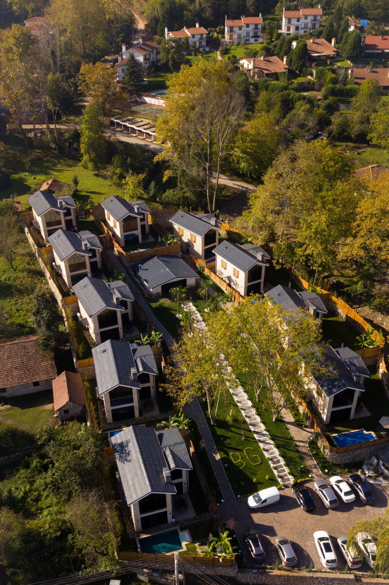 BG Sapanca Villen bieten unseren Gästen ein einzigartiges Urlaubserlebnis mit ihrer Steinstruktur in Harmonie mit der Natur, vollständig geschützte konservative Struktur, privaten beheizten Pool.