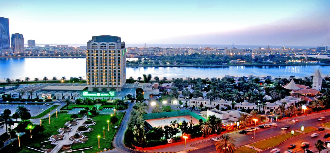 Overlooking the Khalid Lagoon, Holiday International is also just one mile from the Gold Souq and nearby to Sharjah's beaches, safaris and natural parks.
