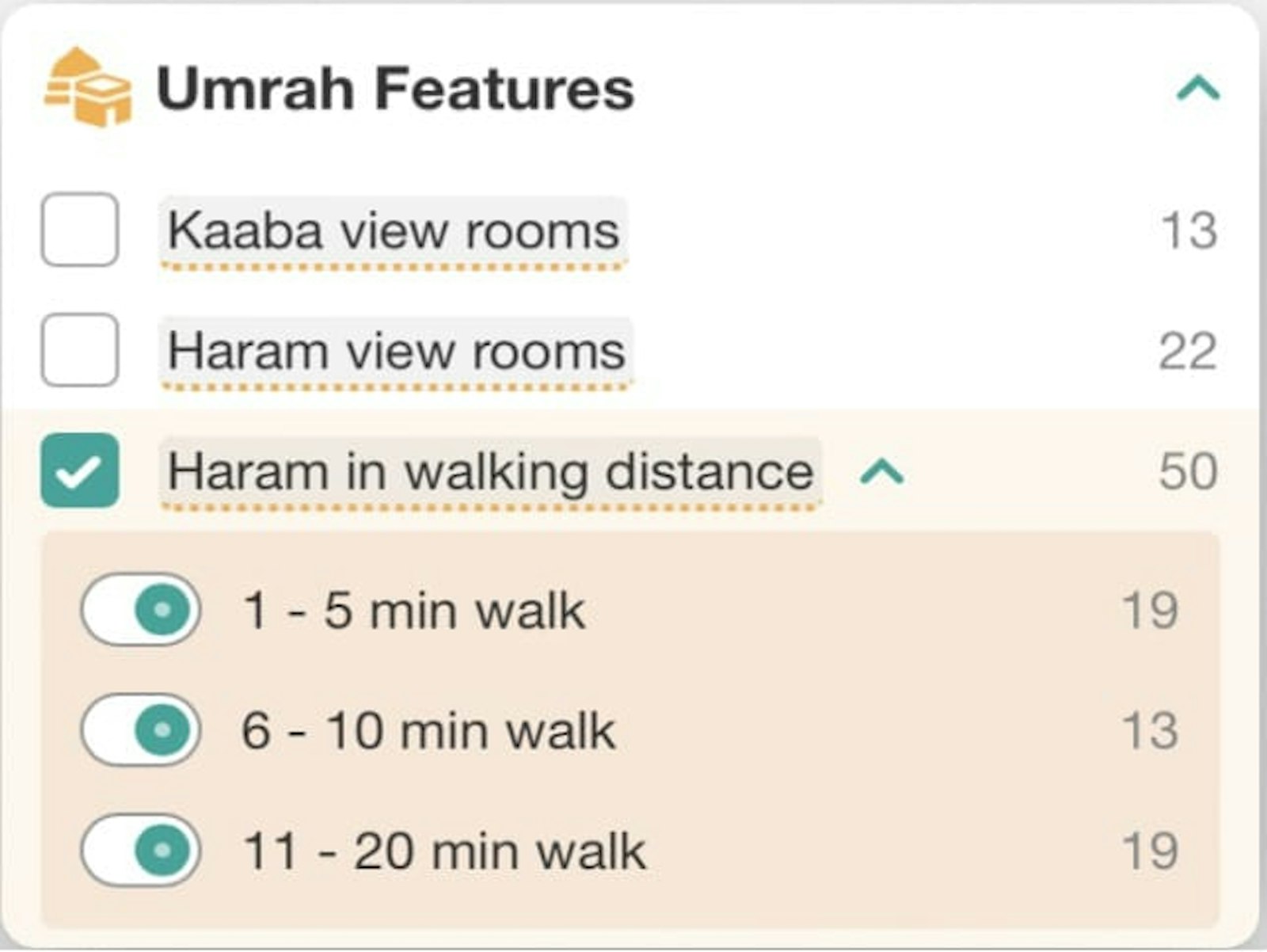 With Umrah, costs can vary wildly - from around £500 to a few thousand pounds depending on the time of year you travel. Umrah is more accessible and affordable, especially if you avoid the peak seasons like Ramadan. Performing Umrah at quieter times also allows pilgrims to access or go near sites that are traditionally very crowded, for example the Kaaba or the Hajar al-Aswad (Black Stone). Pilgrims no longer need to book an Umrah package or travel with a group and now have the flexibility to customise their own trip. This added autonomy is proving popular with pilgrims, especially for those who opt for an Umrah Plus trip - combining Umrah with a visit to other holiday destinations. Our unique Umrah filters and features help pilgrims to choose accommodation which is suitable for their needs, for example to find rooms with Haram-view or Kaaba-view, within walking distance of the Haram, or with a free shuttle service.