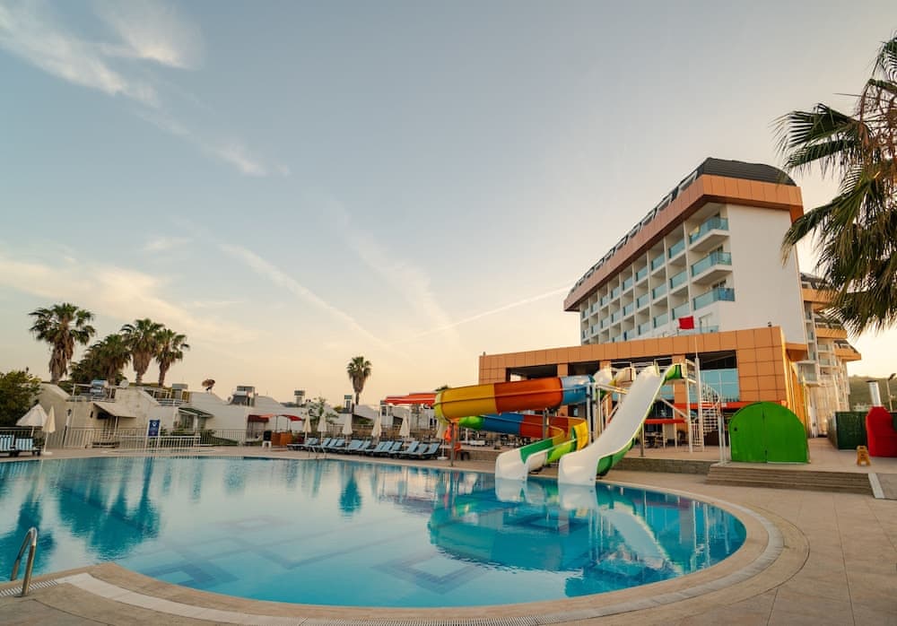 Yes, Throne Beach Resort & Spa offers Kids' club, Games room, Kids' pool, Water slides.