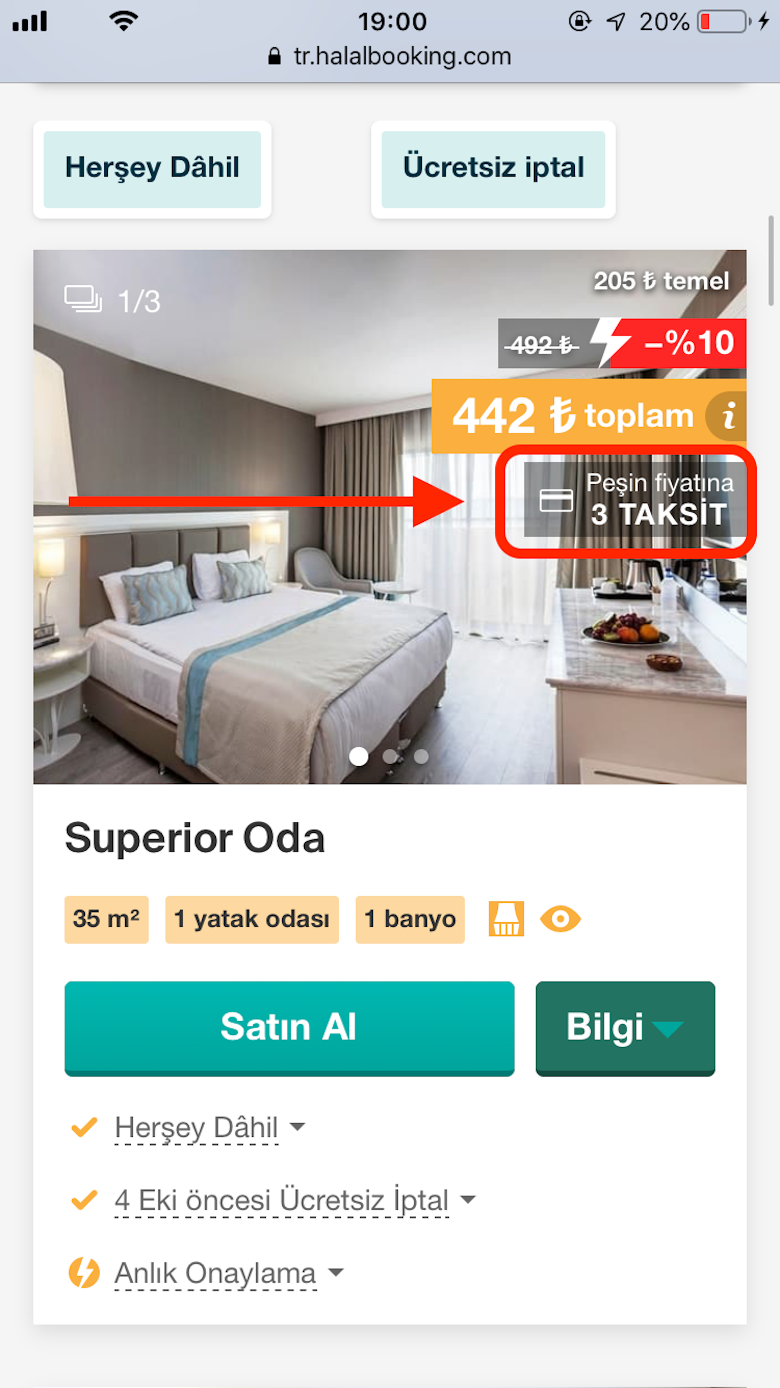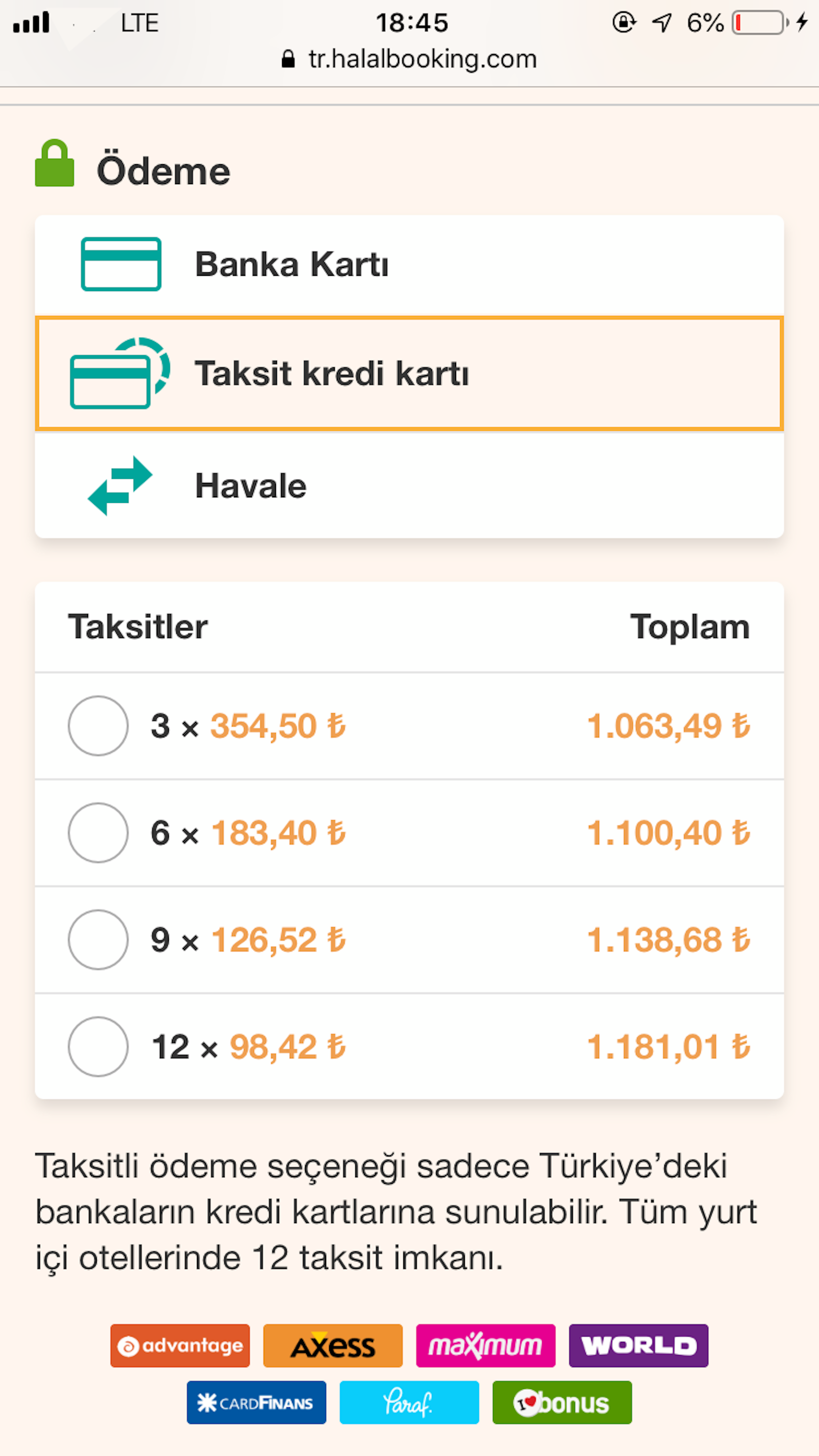 Halalbooking.com üzerinden yaptığınız tatil rezervasyonlarında tüm yurt içi otellerinde 12 taksit imkanı sunuluyor. Ayrıca tüm yurtdışı otellerinde tüm kredi kartlarına peşin fiyatına 3 taksit ödeme imkanı ile hayallerinizin tatiline artık hiç de uzak değilsiniz!