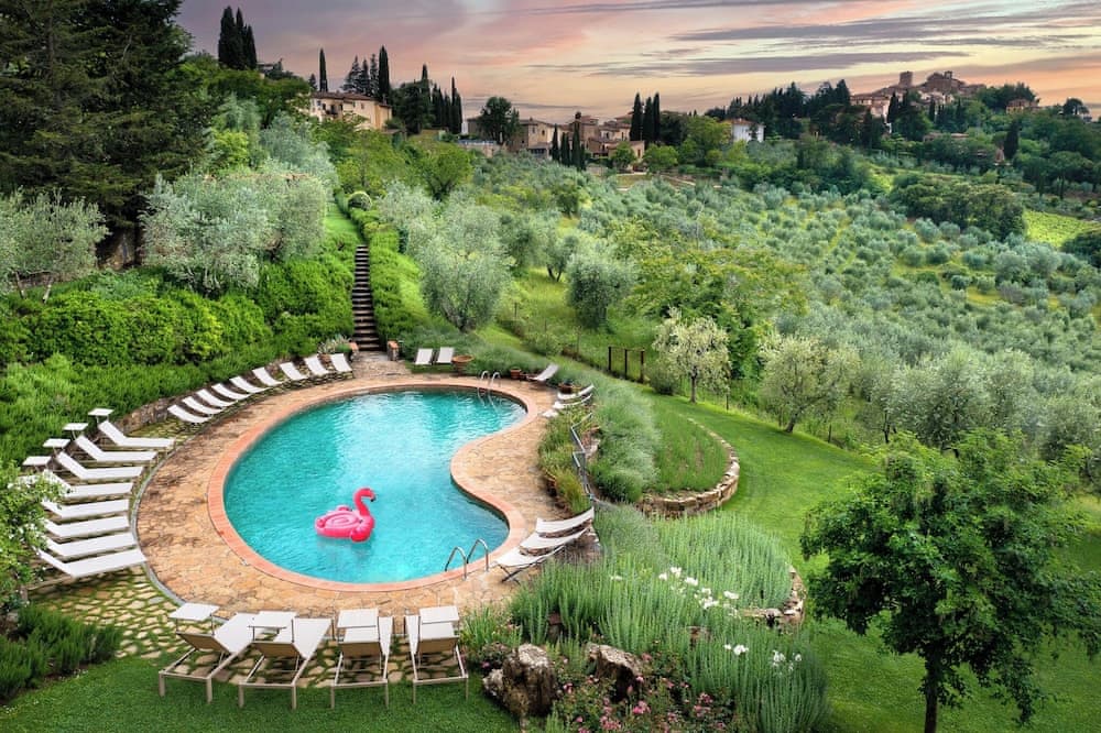 Greve in Chianti bölgesindeki La Pensione di Vignamaggio misafirlere kırsal bölgede, Santa Maria Assunta Kilisesi ile 1 dakika sürüş mesafesinde ve Museo del Vino Şarap Müzesi ile 9 dakika mesafede konaklama olanağı sunuyor. Bu konaklama yeri Piazza Matteotti ile 6,4 km (4 mil) ve Poggio al Sole ile 11,4 km (7,1 mil) mesafede.