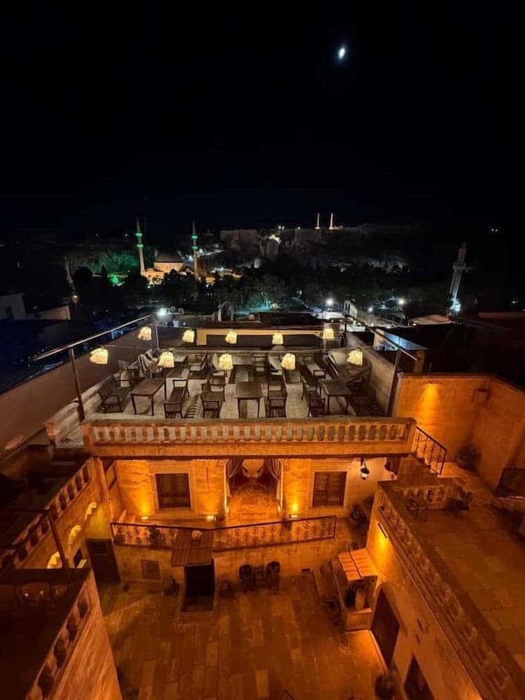Türkmen Konağı misafirlere Şanlıurfa (Eyyübiye) bölgesinde, Balıklıgöl yakınında ve Gölbaşı Parkı ile 3 dakika yürüyüş mesafesinde konaklama olanağı sunuyor. Bu otel Halil-Ür Rahman Camii ile 0,6 km (0,4 mil) ve Urfa Kalesi ile 1,3 km (0,8 mil) mesafede.